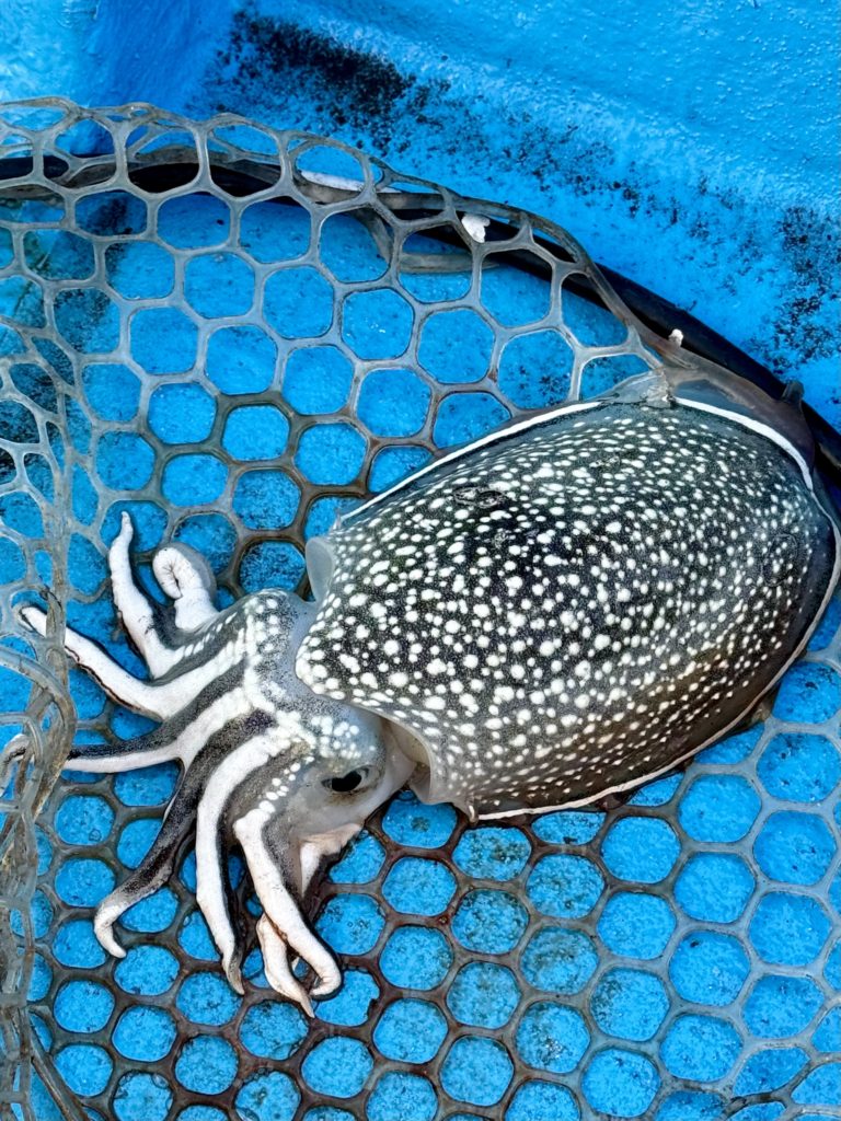 イカが針に引っ掛かりました