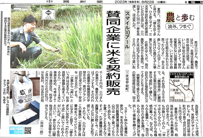 【2023年8月22日】中国新聞に掲載されました