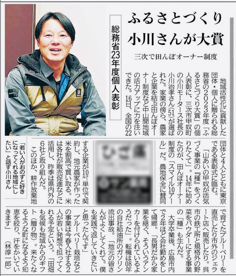 令和5年度ふるさとづくり大賞にて個人表彰頂きました「子孫から預かった宝物」